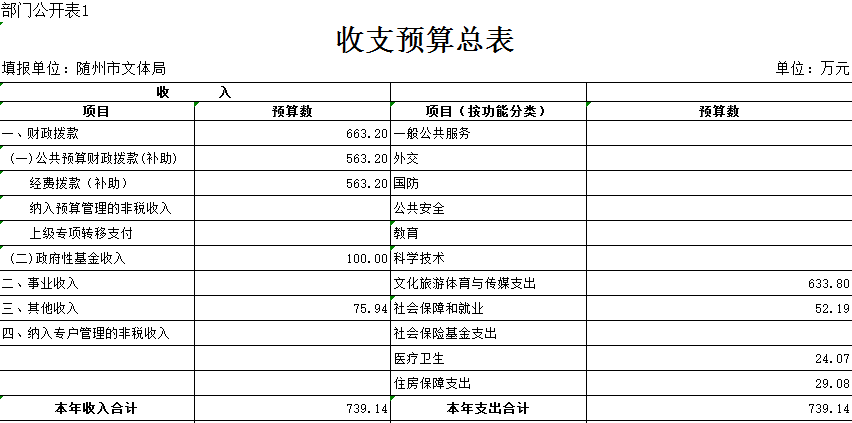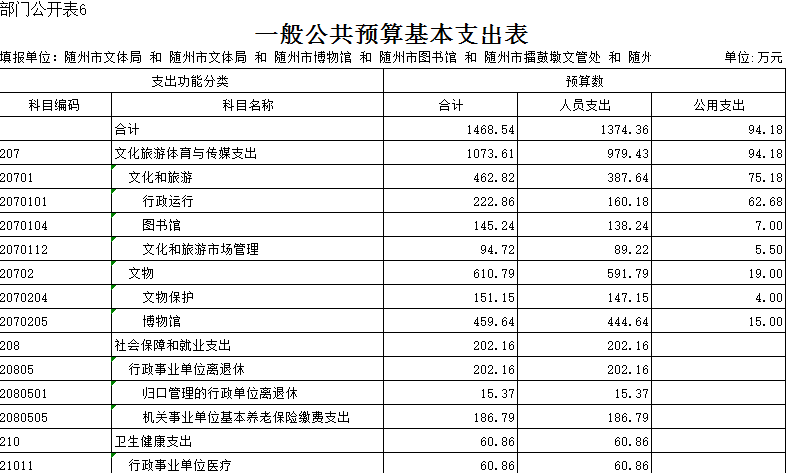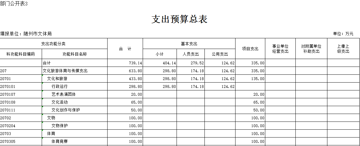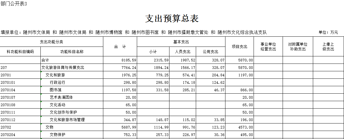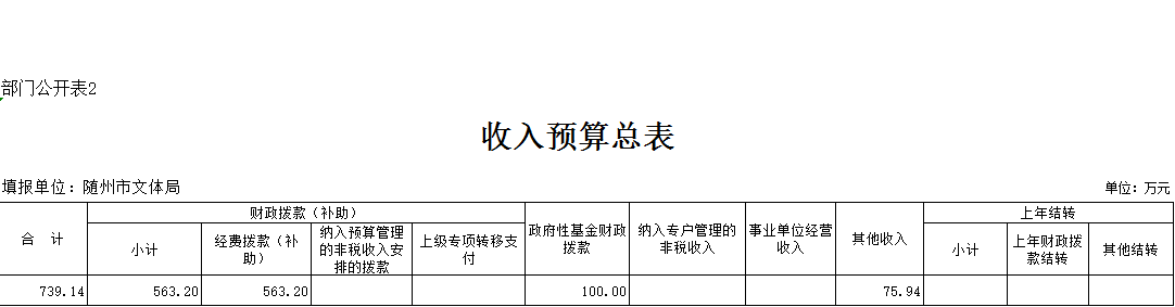 第三部分 隨州市文化體育新聞出版廣電局2019年部門預算表