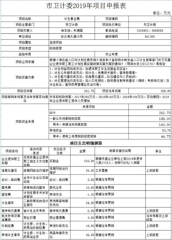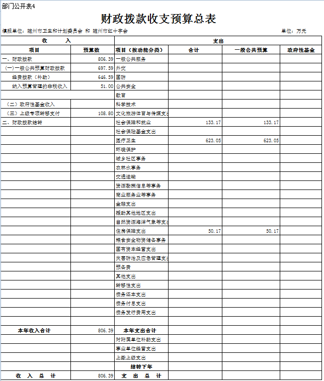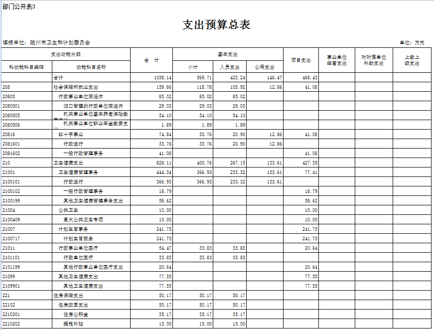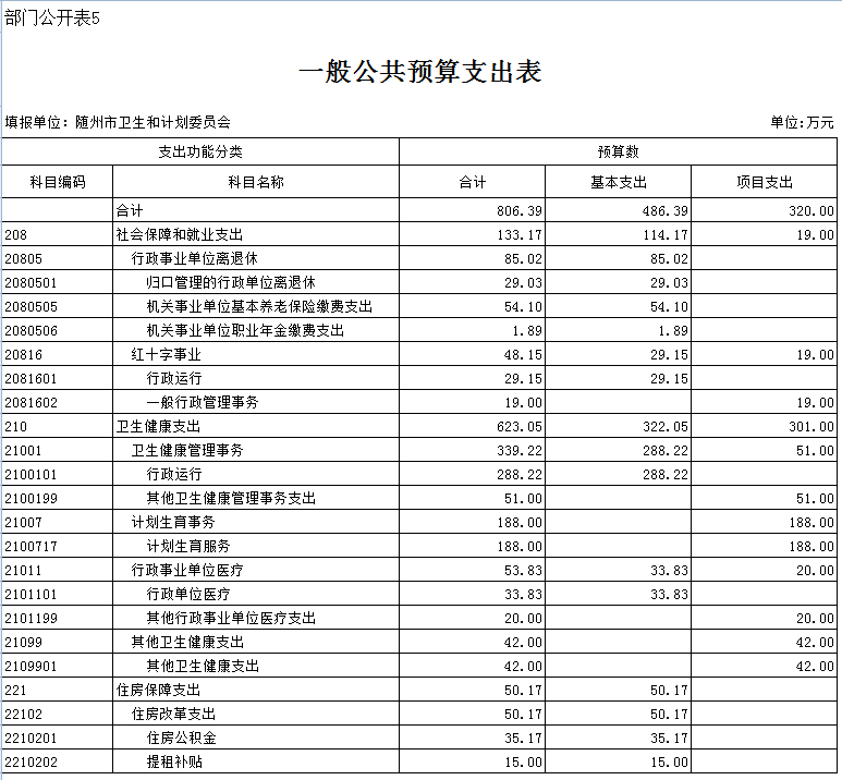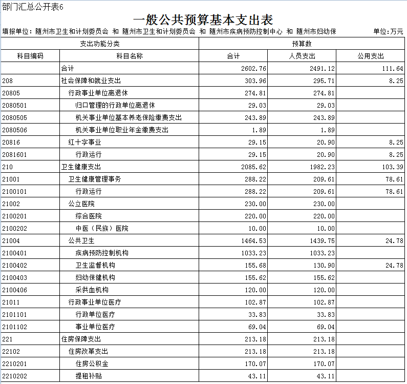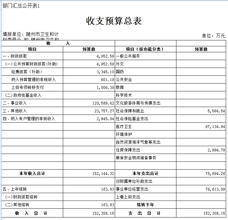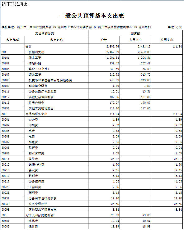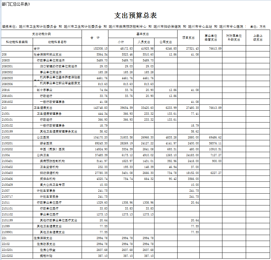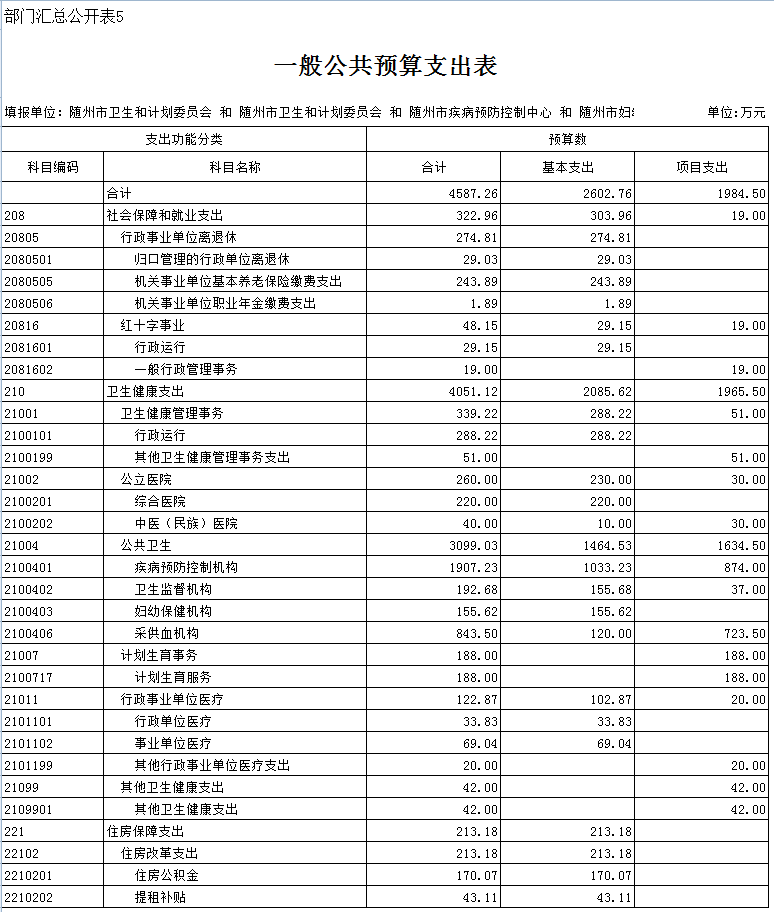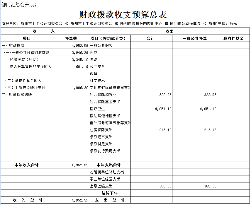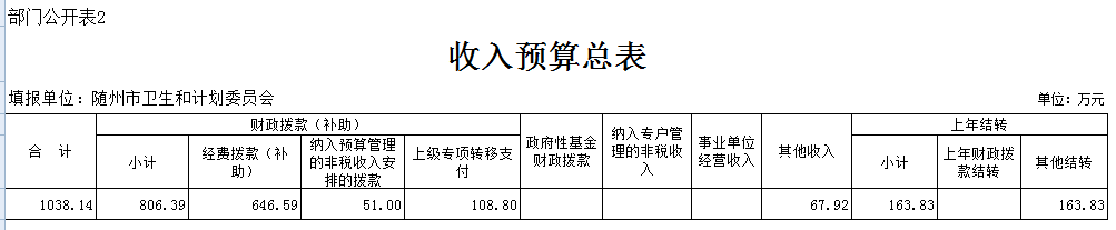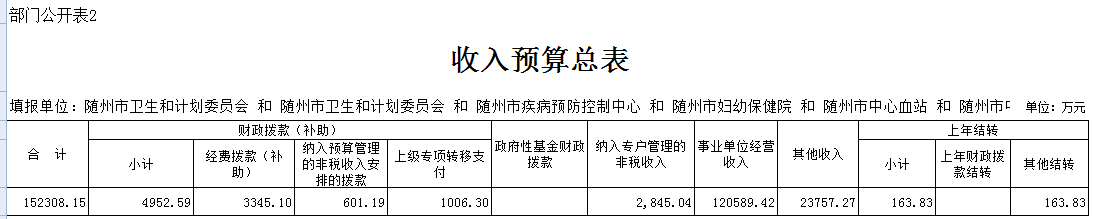 二、隨州市衛生計生委2019年部門匯總預算表