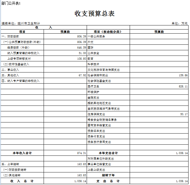 1、隨州市衛計委2019年部門預算收支情況說明