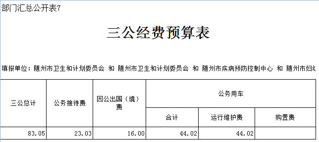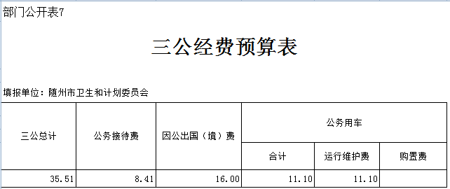 2019年隨州市衛生計生委“三公”經費預算安排35.51萬元,較上年增加3.3萬元,增幅10.25%。其中:
