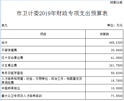 第四部分隨州市衛計委2019年預算績效情況