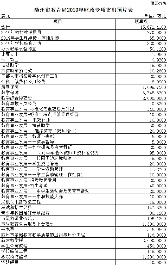 第二部分 ?隨州市教育局2019年部門預算情況說明