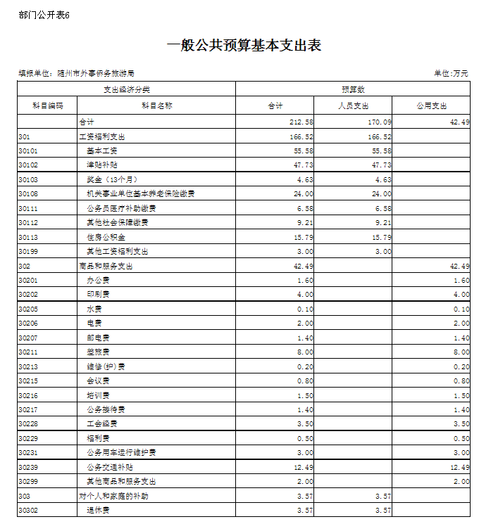 ? 第三部分 ?隨州市外事僑務(wù)旅游局2019年部門預(yù)算表