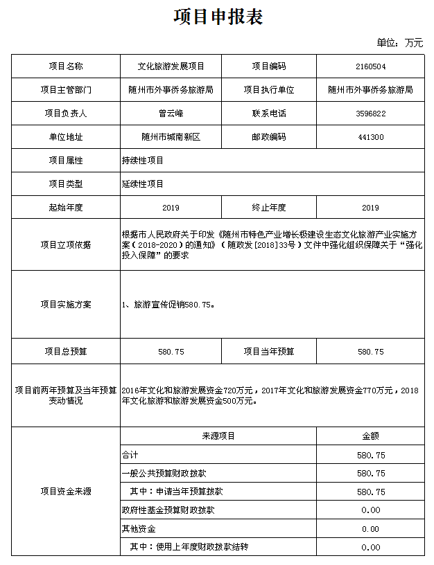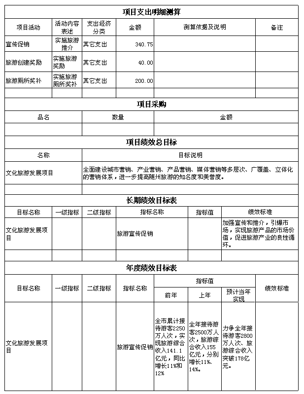 ? 2、其他旅游業(yè)管理與服務(wù)支出(2160504):500萬元,用于旅游宣傳促銷工作經(jīng)費(fèi)。