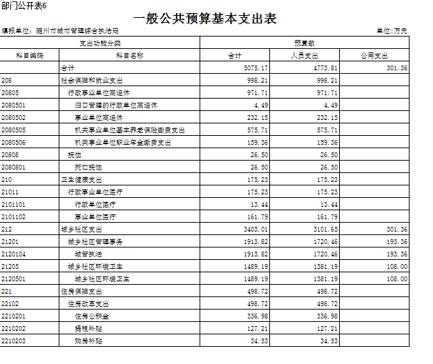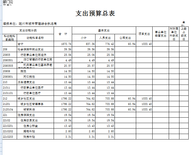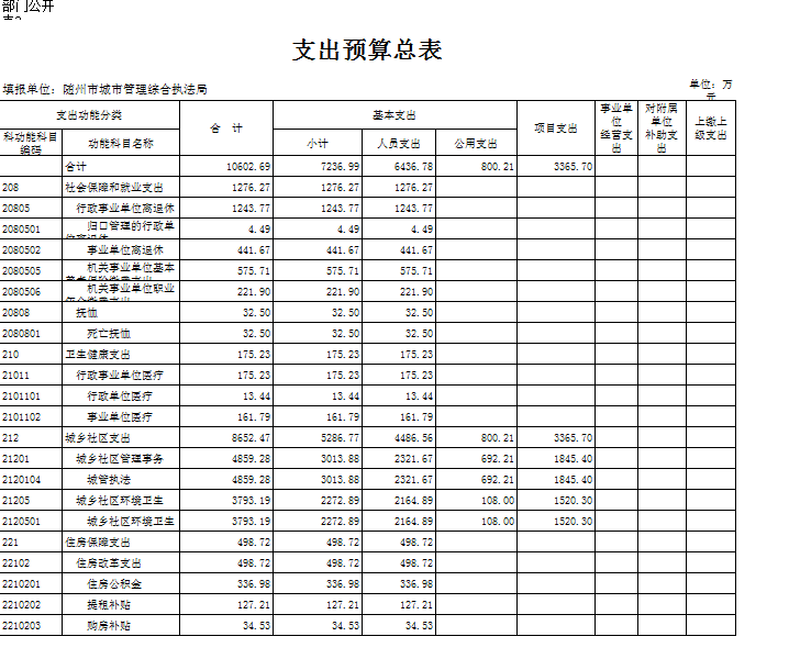 第三部分??隨州市城管局2019年部門預(yù)算表