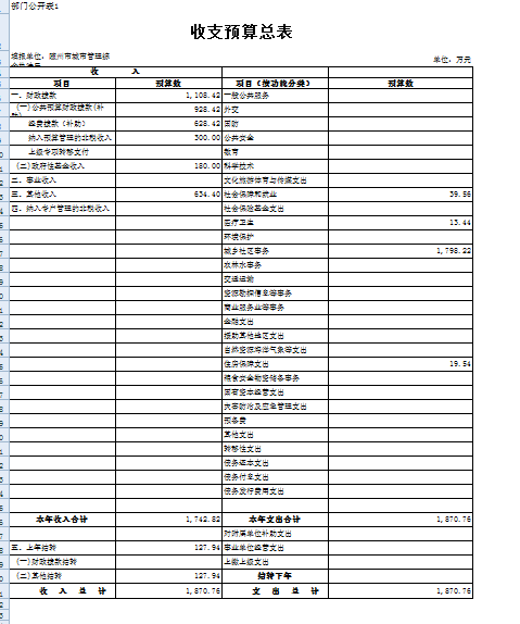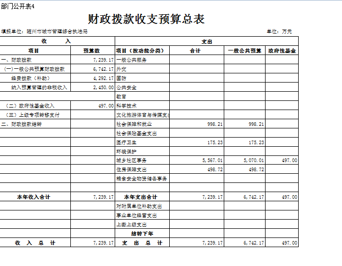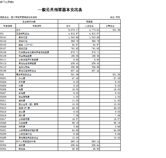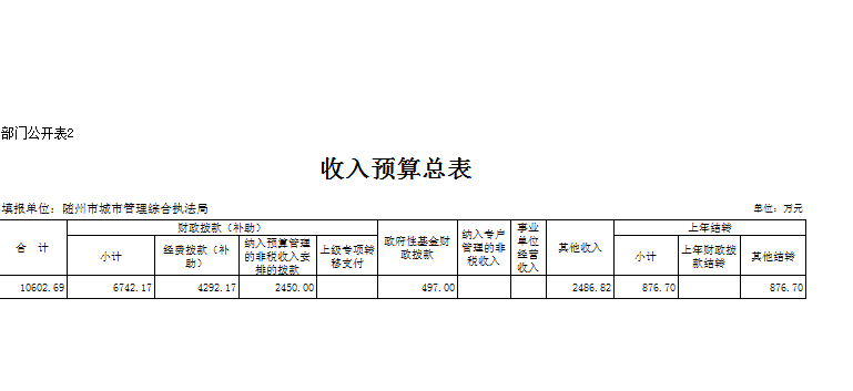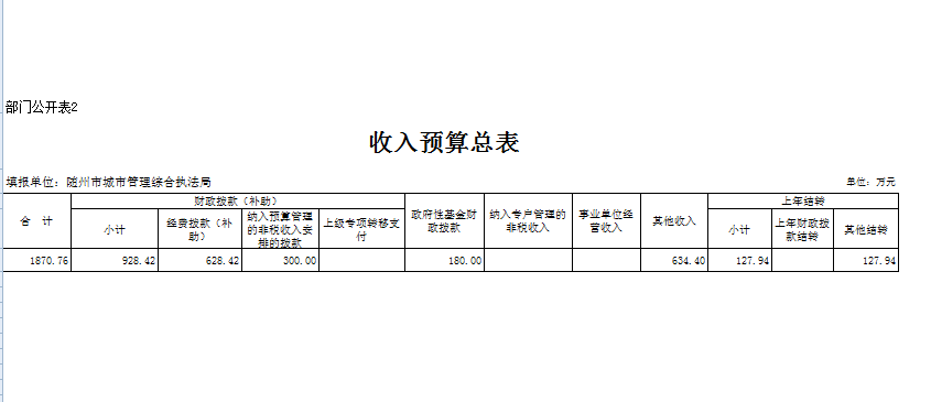 第三部分? ?隨州市城管局2019年部門預(yù)算表