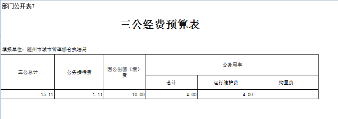 ? ? ? ?2019年度執(zhí)法局系統(tǒng)匯總“三公”經(jīng)費(fèi)年初預(yù)算113.06萬(wàn)元,比上年增加37.76萬(wàn)元,增加50.15%。其中公務(wù)接待費(fèi)18.39萬(wàn)元,增加4.19萬(wàn)元,增加29.51%; 因公出國(guó)(境)費(fèi)10萬(wàn)元,無(wú)變化;公務(wù)用車運(yùn)行維護(hù)費(fèi)84.69萬(wàn)元,比上年增加33.59萬(wàn)元,增加65.73%;公務(wù)用車購(gòu)置費(fèi)0萬(wàn)元,無(wú)變化,主要原因?yàn)楣珓?wù)用車運(yùn)行維護(hù)費(fèi)實(shí)際支出較多,調(diào)整預(yù)算更符合實(shí)際。