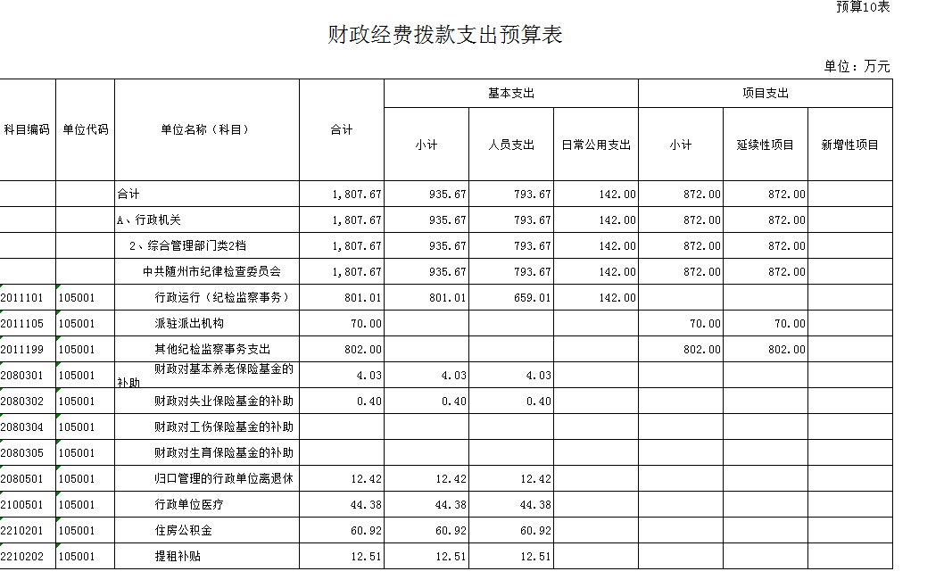 部門預算單位為市紀委監(jiān)察局(含市紀委派出紀工委監(jiān)察分局)