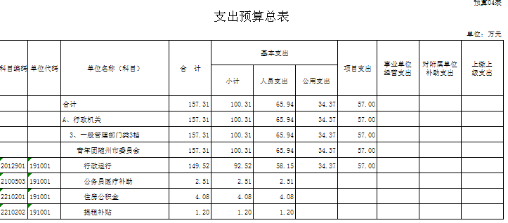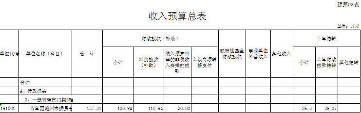 ??2016年團市委收入預算總額為164.15萬元,均為財政撥款(補助)收入,其中:財政撥款(補助)收入132.70萬元,上年財政結(jié)轉(zhuǎn)31.45萬元。支出預算總額為164.15萬元,其中:基本支出110.38萬元,項目支出53.77萬元。