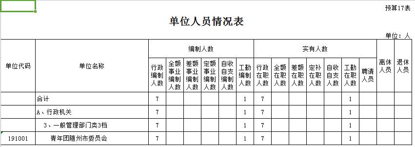 ??根據(jù)《中共湖北省委、湖北省人民政府關(guān)于印發(fā)〈隨州市黨政群機構(gòu)設(shè)置及人員編制方案〉的通知》(鄂文[2000]46號)精神,設(shè)置共青團隨州市委員會。團市委機關(guān)共設(shè)置4個職能部室,分別是辦公室、組織宣傳部、學少權(quán)益部、青工青農(nóng)部。團市委機關(guān)行政編制為7名,其中書記1名,副書記2名,科級領(lǐng)導職數(shù)4名。另核定機關(guān)工勤人員事業(yè)編制1名。