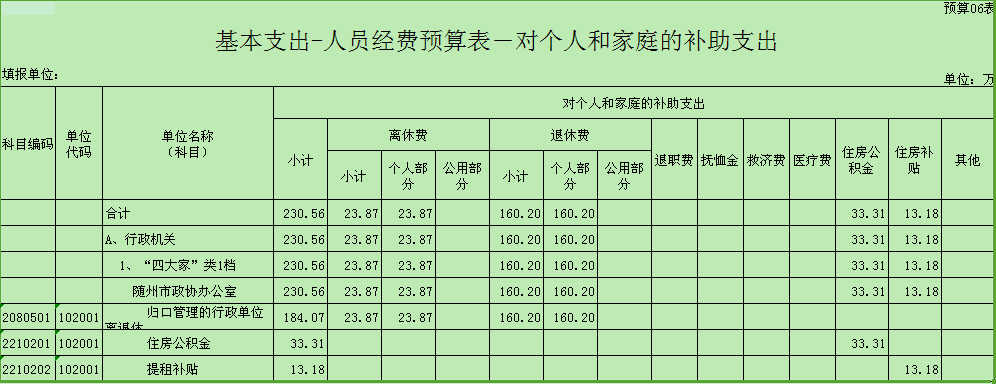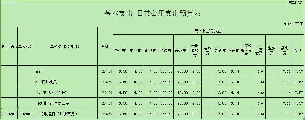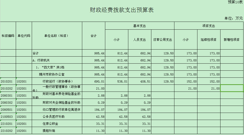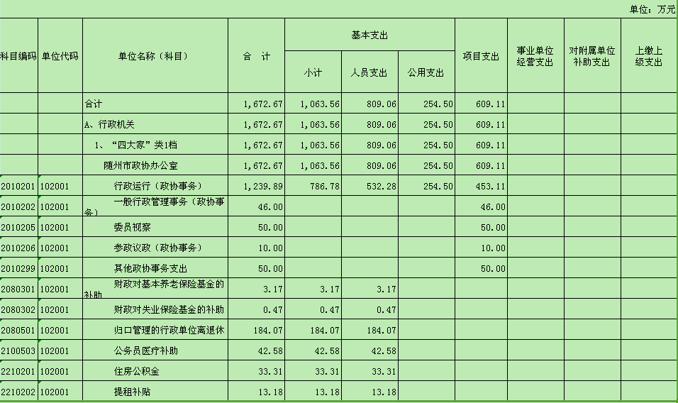 | 科目編碼 | 單位代碼 | 單位名稱(chēng)(科目) | 合計(jì) | 基本支出 | 項(xiàng)目支出 | ||||