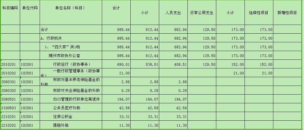 | 小計(jì) | 人員支出 | 日常公用支出 | 小計(jì) | 延續(xù)性項(xiàng)目 | 新增性項(xiàng)目 | ||||