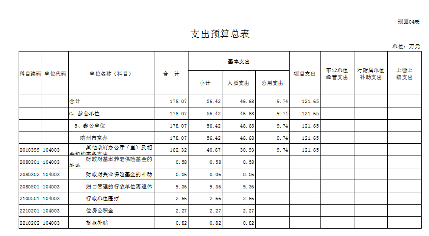 | 財(cái)政撥款收支預(yù)算總表 | |||||