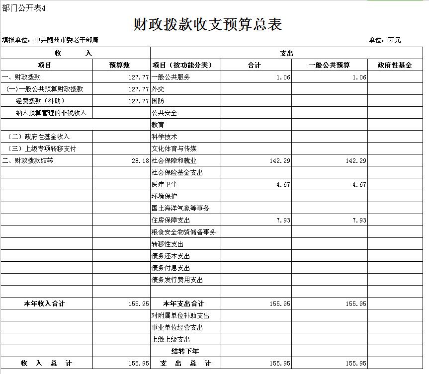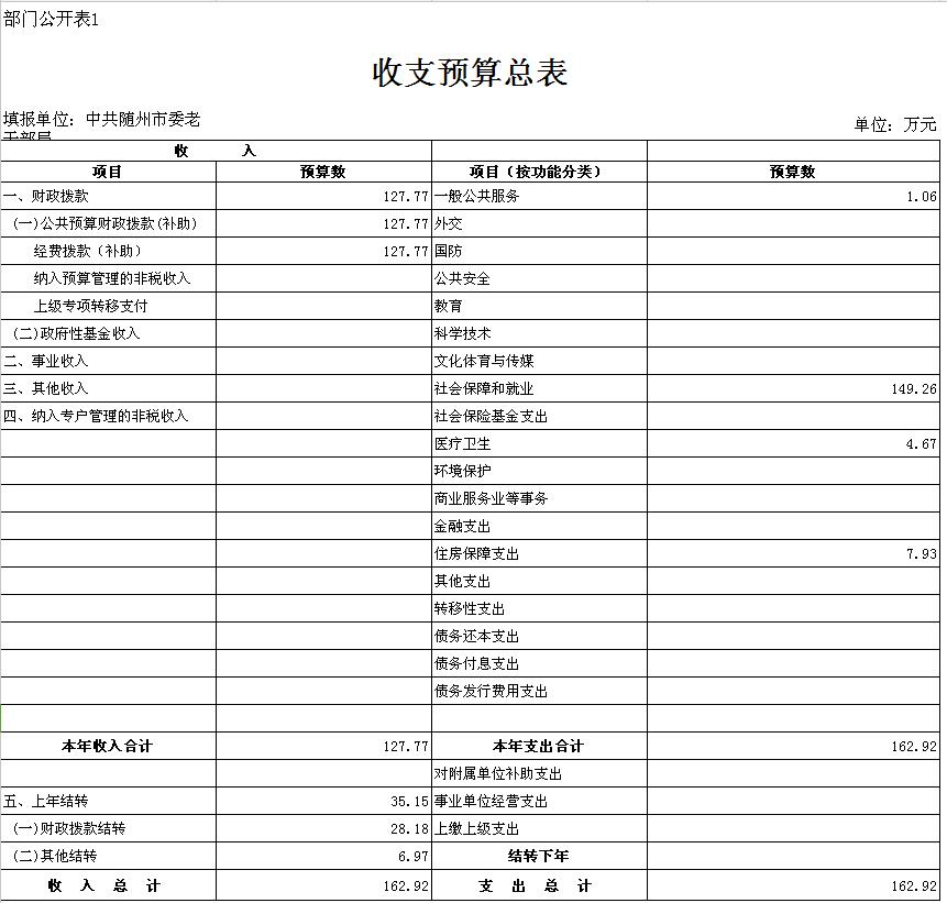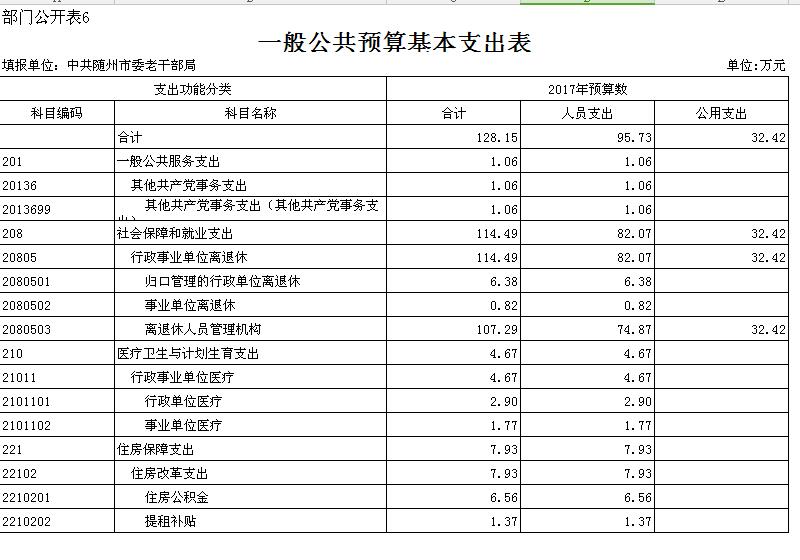 四、中共隨州市委老干部局2017年部門(mén)預(yù)算表(包括二級(jí)單位)