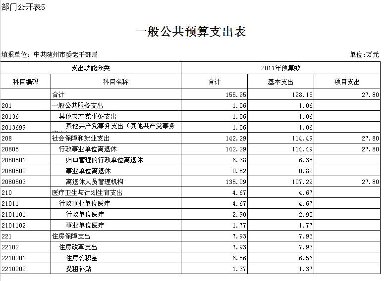 中共隨州市委老干部局2017年部門(mén)預(yù)算