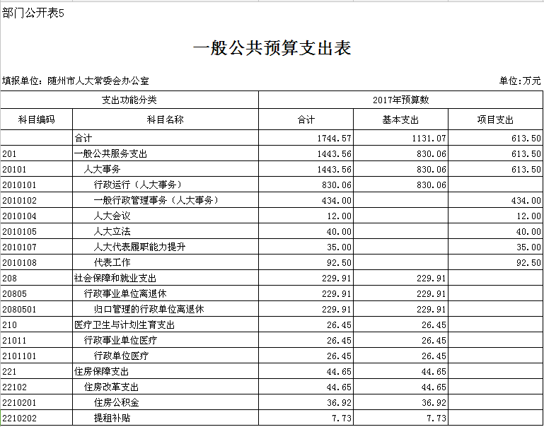 第三部分 隨州市人大辦2017年部門預算表