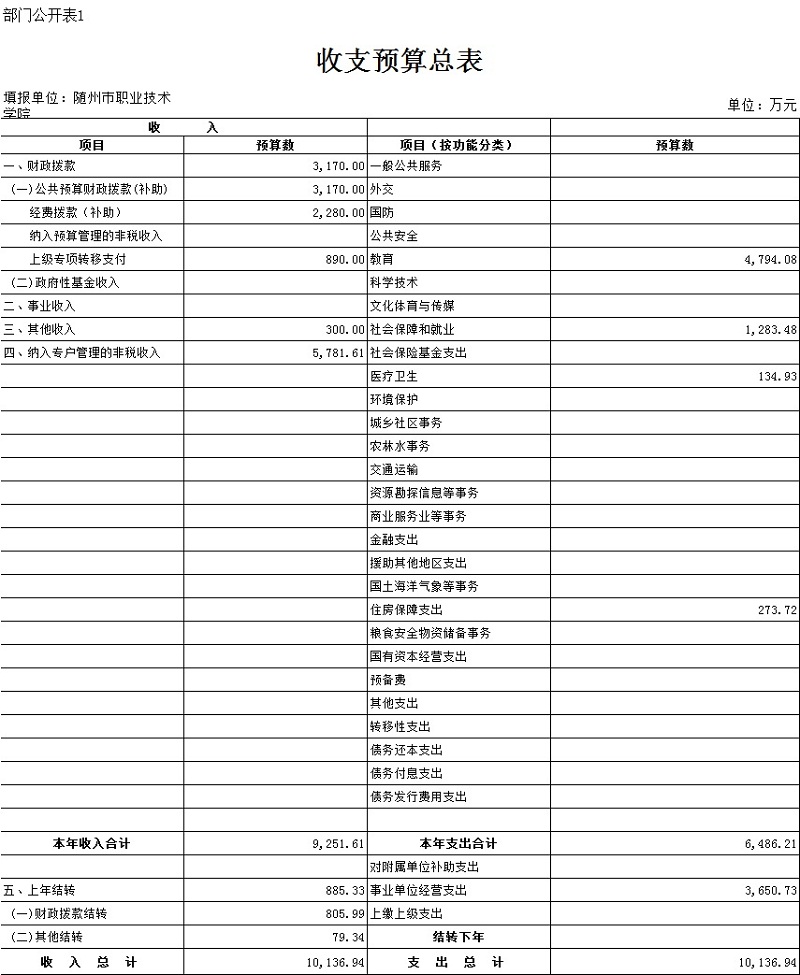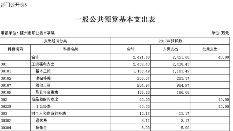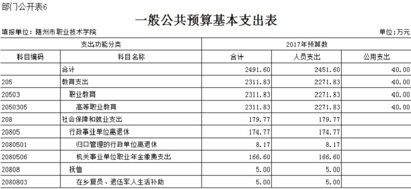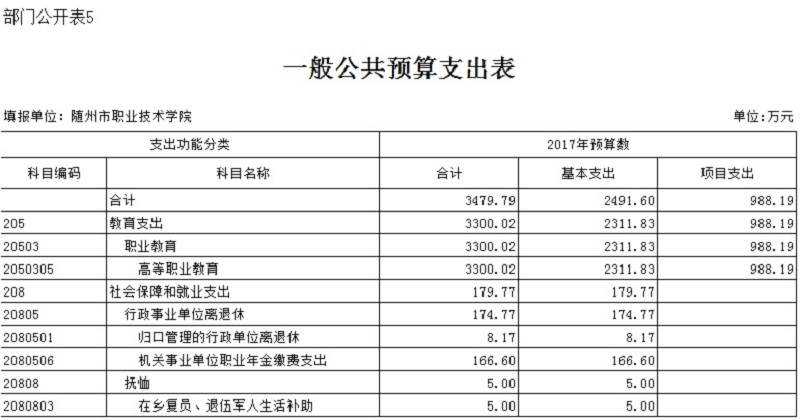 ??隨州職業技術學院2017年部門預算公開