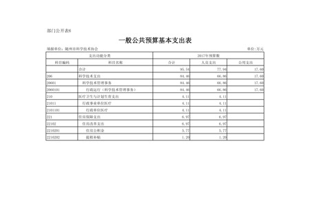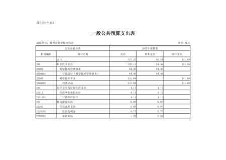 隨州市科協(xié)2017年部門預(yù)算