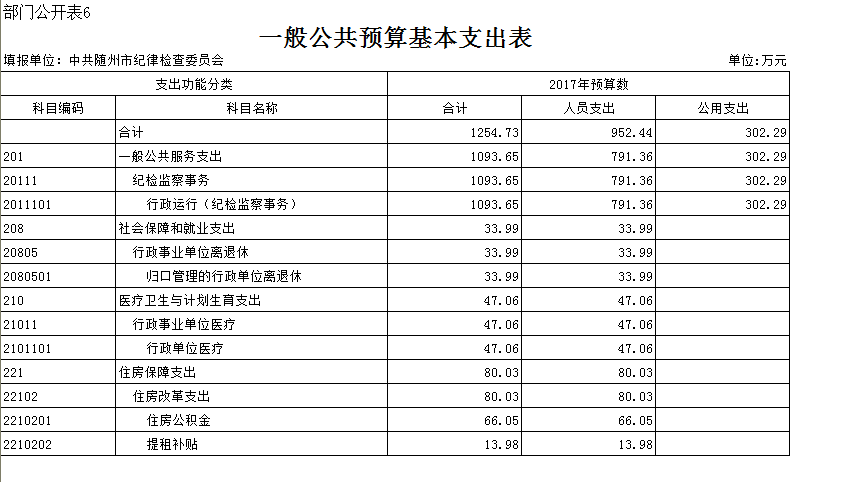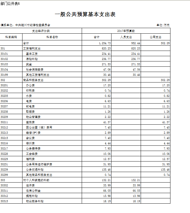 中共隨州市紀委 隨州市監察局2017年部門預算