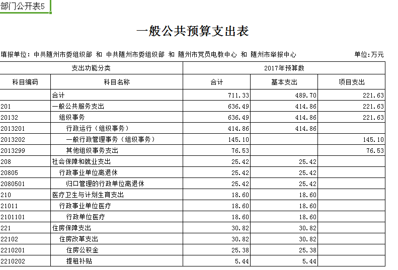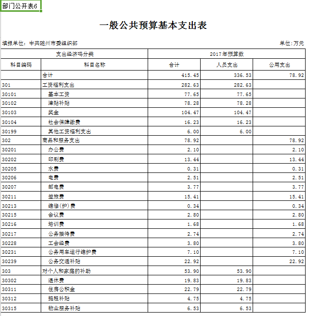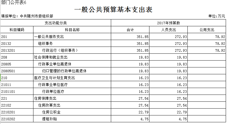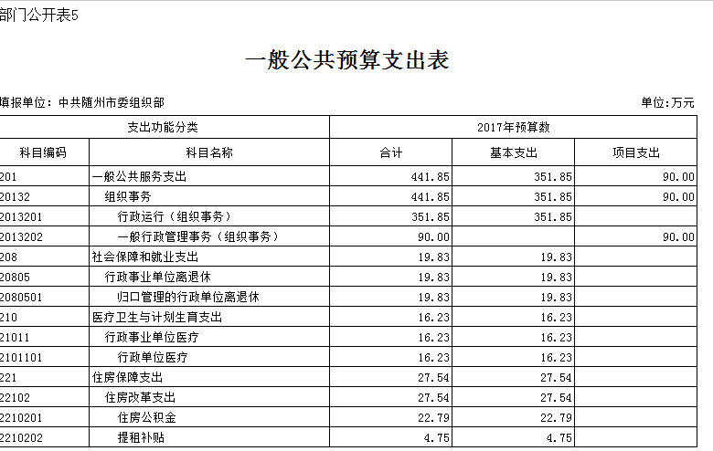??第三部分??隨州市委組織部2017年部門預算表(單位:萬元)