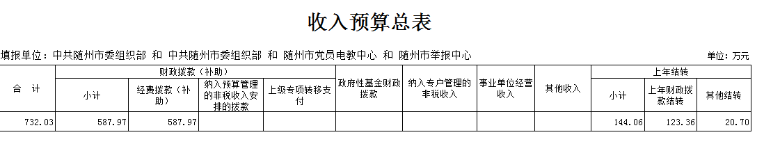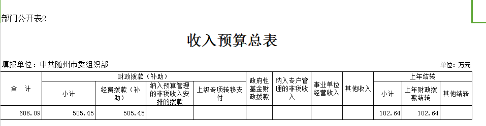 ??市委組織部機關收入預算金額608.09萬元,其中財政撥款(補助)505.45萬元,上年結轉102.64萬元。