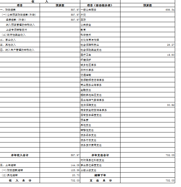 ??2017年,部門匯總(含二級單位)收入預算金額732.03萬元,其中財政撥款(補助)587.97萬元、上年結轉144.06萬元。
