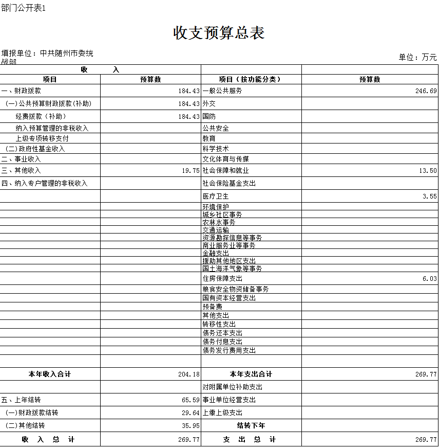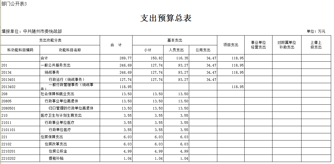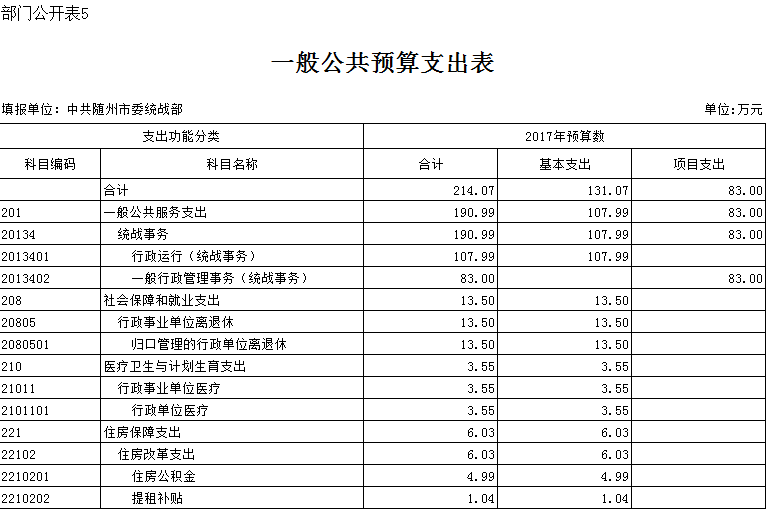 市委統戰部2017年部門預算