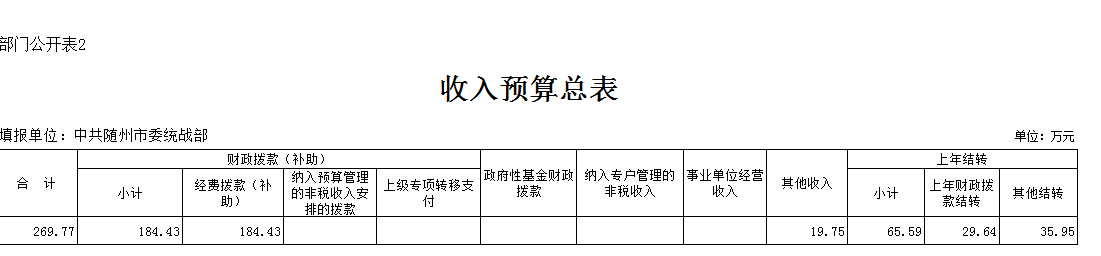 2017年財政收入269.77萬元,其中財政撥款184.43 萬元,其他收入19.75萬元,上年結轉65.59萬元。比上年增加69.92萬元,增加35%。