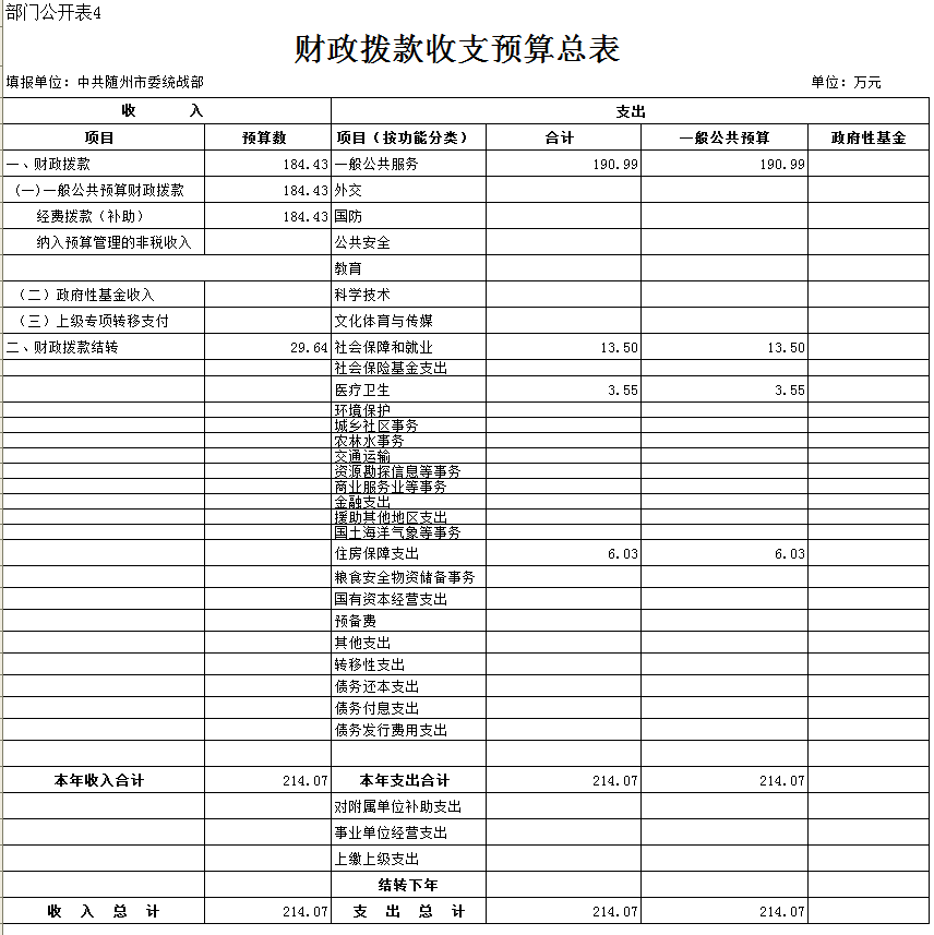 2017年財政撥款支出214.07萬元,其中,一般公共服務支出190.99萬元,社會保障和就業支出13.5萬元,醫療衛生支出3.55萬元;住房保障支6.03萬元。