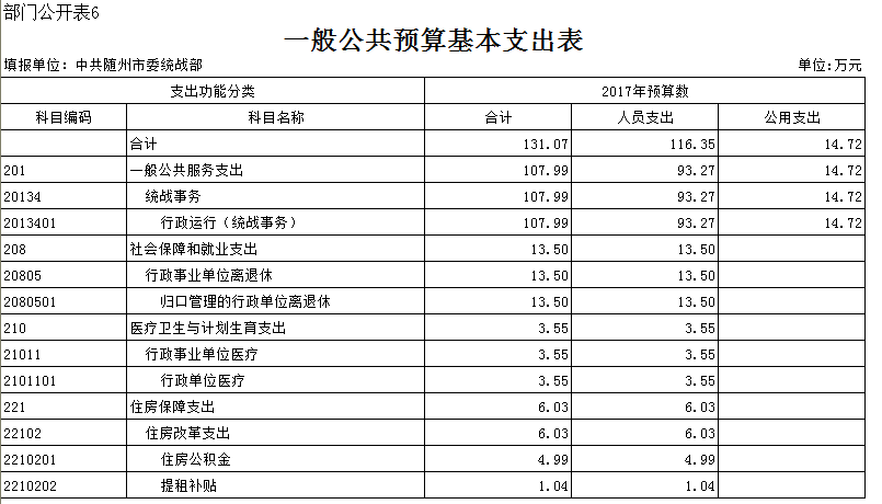 第三部分市委統戰部2017年部門預算表