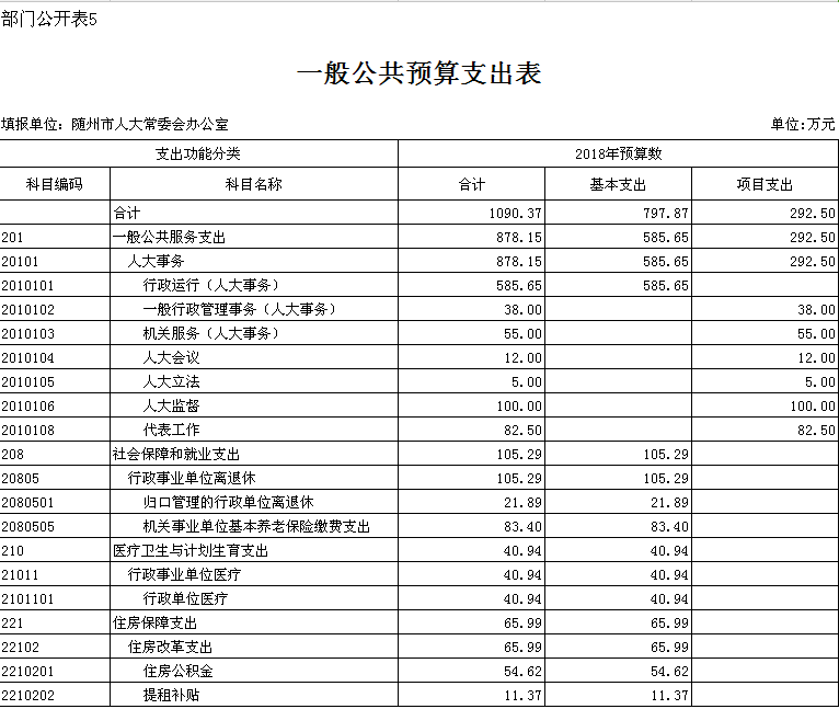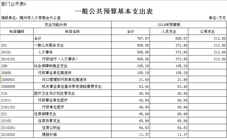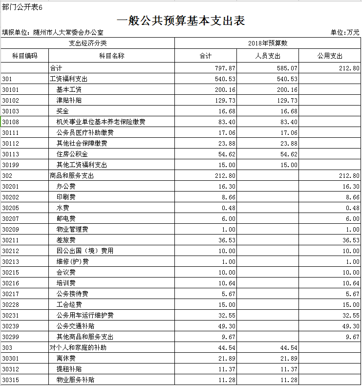 第三部分 隨州市人大辦2018年部門預算表
