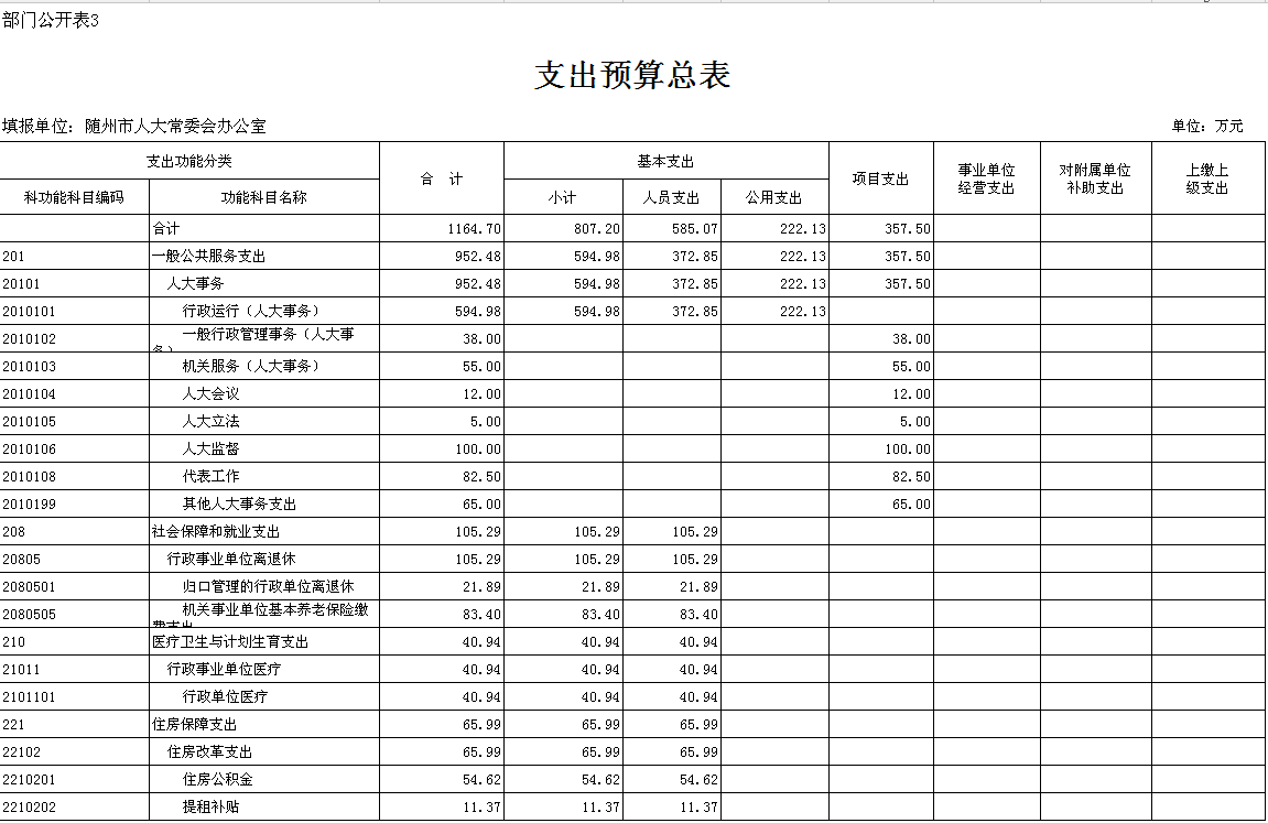 提租補貼(2210202):反映市人大機關住房補貼經費支出。