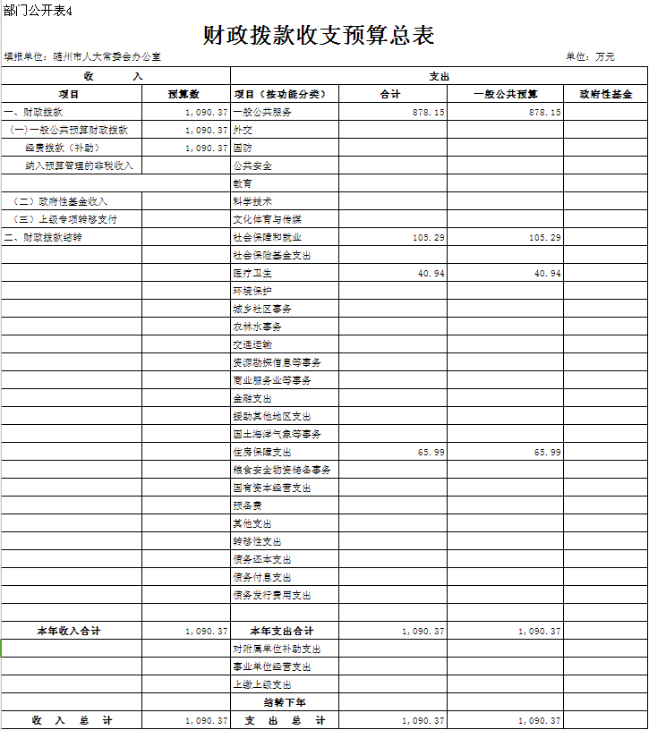 四、財政撥款收支總表