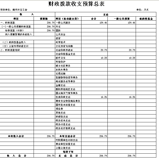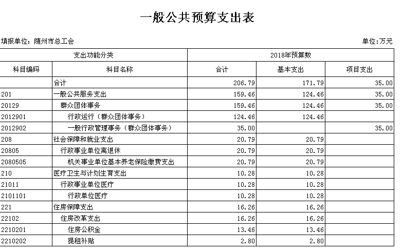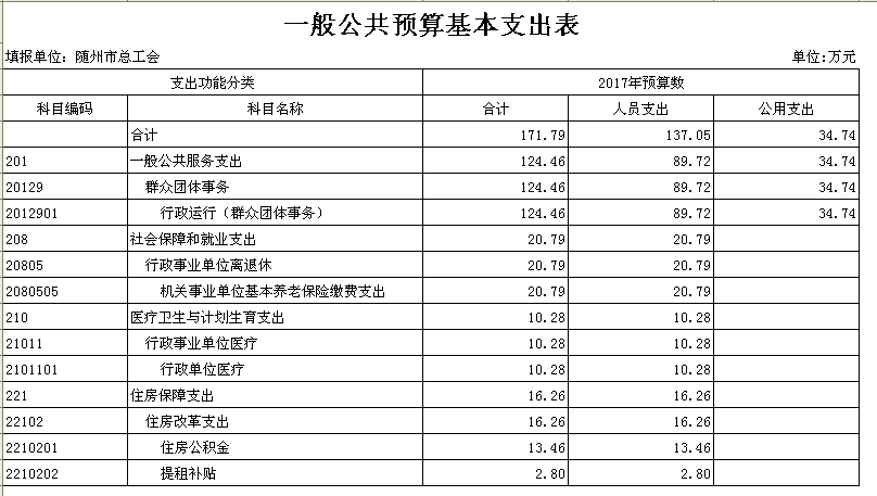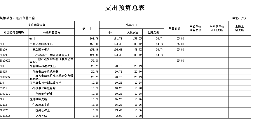 本年部門支出預算總額206.79萬元,其中:行政運行(群眾團體事務)預算金額124.46萬元(其中人員支出89.72萬元、公用支出34.74萬元)、一般行政管理事務(群眾團體事務)預算項目支出35.00萬元、機關事業單位基本養老保險繳費支出預算人員支出金額20.79萬元、行政單位醫療預算人員支出金額10.28萬元、住房公積金預算人員支出13.46萬元、提租補貼預算人員支出2.8萬元。較上年預算安排減少了139.14萬元,比上年預算安排減少了40.22%,主要是退休人員的工資納入社保統籌,人員經費減少和部分項目經費降低;