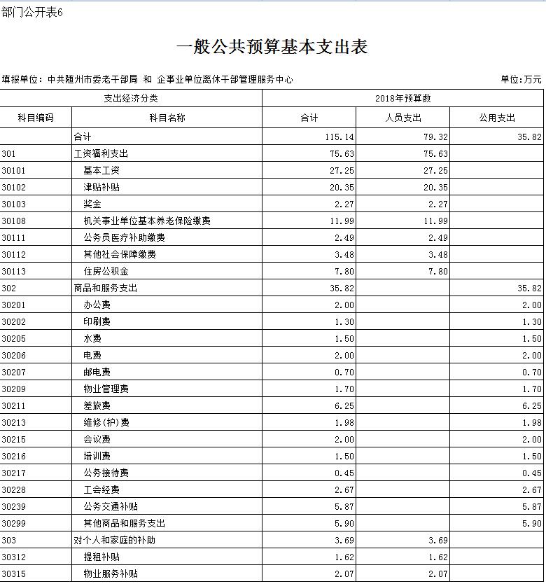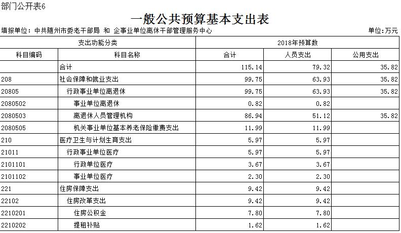 第三部分 中共隨州市委老干部局2018年部門預算表