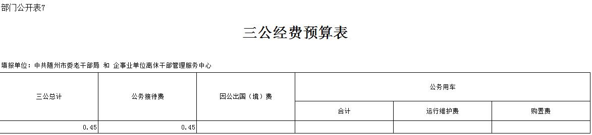 1、隨州市委老干部局(含隨州市企事業(yè)單位離休干部管理服務中心)2018年“三公”經(jīng)費年初預算安排0.45萬元,比上年增加0.15萬元,增幅為50%。其中:
