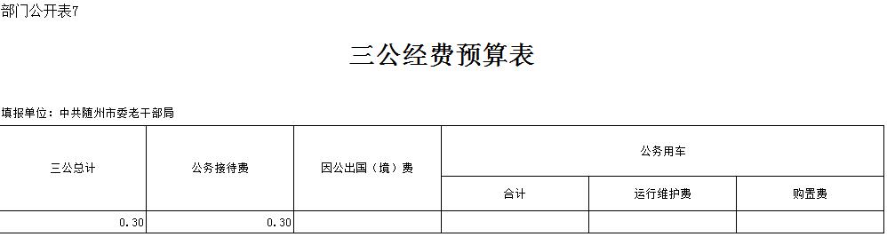2、隨州市委老干部局(機關)2018年“三公”經(jīng)費年初預算安排0.3萬元,與上年持平。其中: