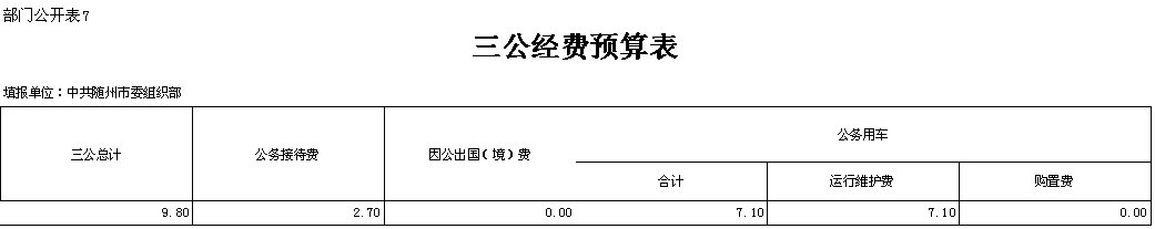 2018年市委組織部本級“三公”經(jīng)費(fèi)年初預(yù)算安排9.8萬元。其中:因公出國(境)費(fèi)0元,與上年一致,主要原因是上年和本年均無出國(境)任務(wù)安排;公務(wù)接待費(fèi)2.7萬元,比上年減少0.04萬元,同比減少1.46%,主要原因是嚴(yán)格控制公務(wù)接待支出,公務(wù)接待費(fèi)用連續(xù)多年逐年遞減;公務(wù)用車運(yùn)行維護(hù)費(fèi)7.1萬元,與上年持平,主要是根據(jù)工作需要據(jù)實(shí)核算;公務(wù)用車購置費(fèi)0元,與上年一致。機(jī)關(guān)公務(wù)用車2輛,2018年無新購置公車計(jì)劃。