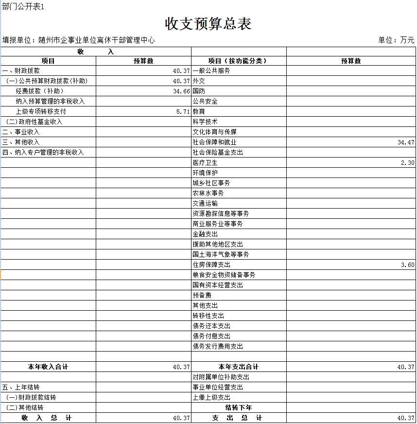 第三部分 隨州市企事業單位離休干部管理服務中心2018年部門預算表