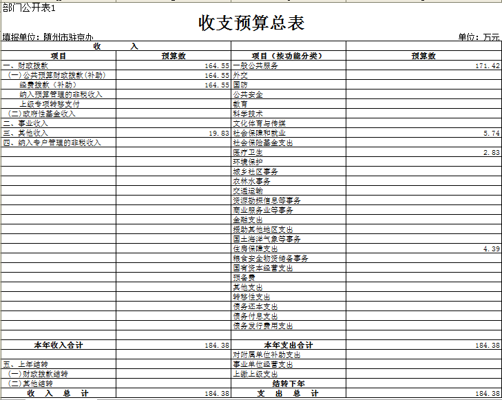 收入預算總額184.38萬元,較上年預算安排的減少7.28萬元。減少3%,因為機關節約開支。