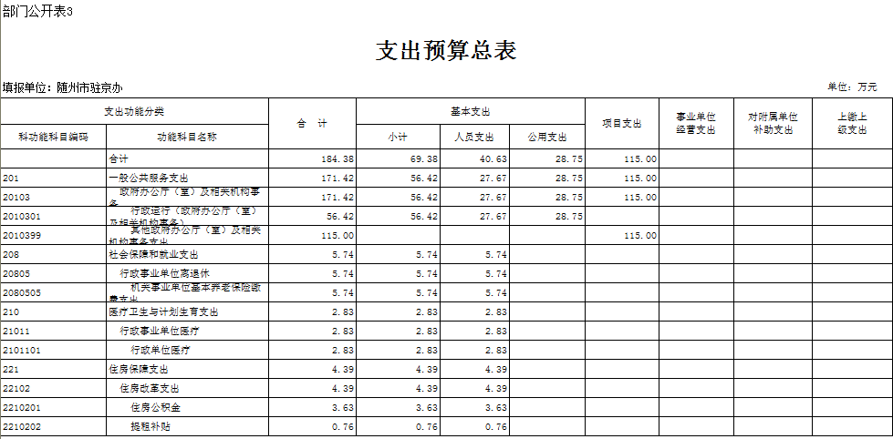 一般公共服務(類)財政事務(款)行政運行(項):指駐京辦行政單位,用于保障機構正常運行、開展日常工作的基本支出。