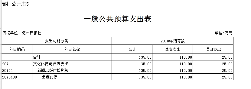 隨州日?qǐng)?bào)社2018年部門預(yù)算目錄