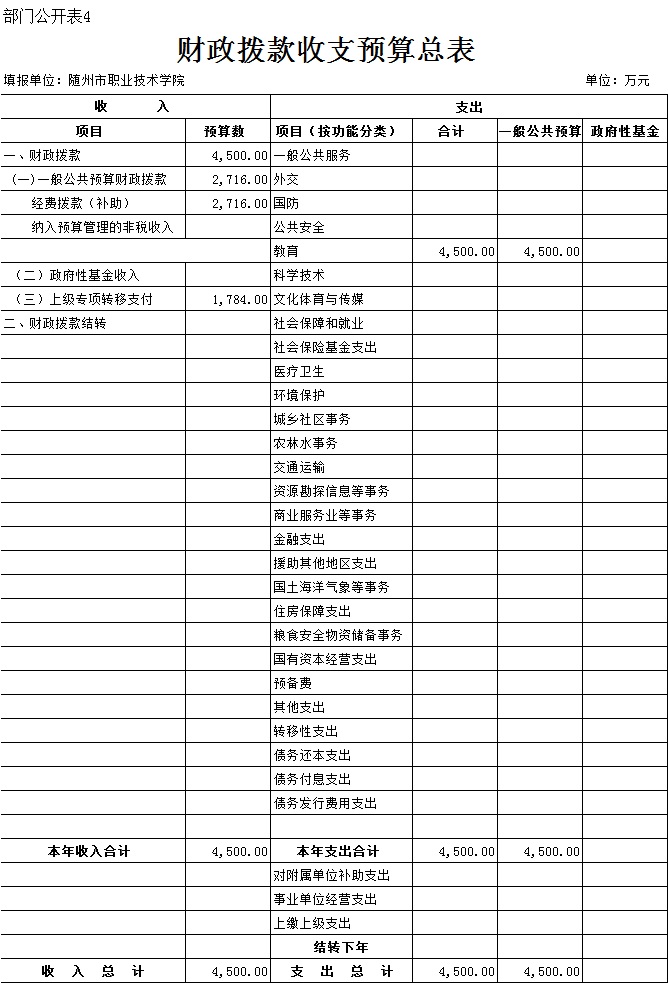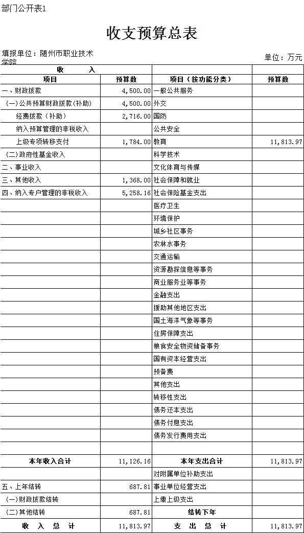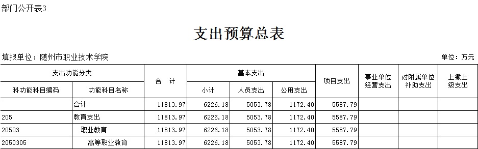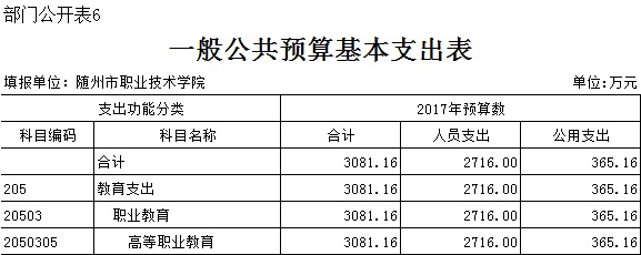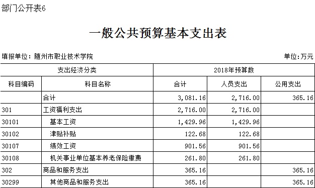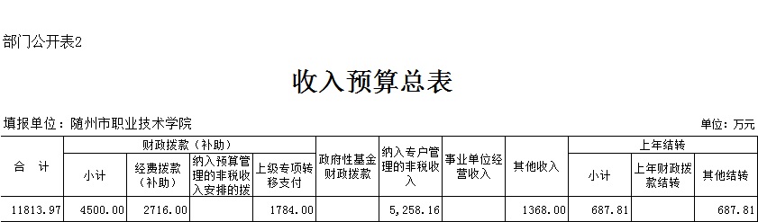 三、隨州職業技術學院2018年部門預算表