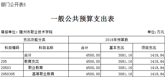 隨州職業技術學院2018年部門預算公開