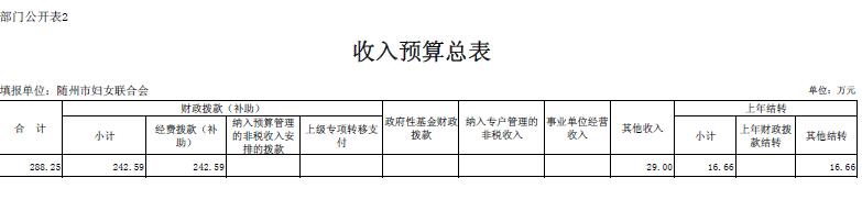 2018年財政撥款收入預算總額為288.25萬元,較上年預算安排的417.12萬元減少128.87萬元,減少30.90%。主要原因:壓縮了婦聯工作經費。其中:財政撥款 242.59 萬元,其他收入29萬元,上年結轉 16.66 萬元。財政撥款(補助)收入242.59萬元,較上年299.20萬元減少56.61萬元,減少18.92%,主要原因:壓縮了婦聯工作經費,減少了婦聯公益項目支出費用。其他收入29萬元,為省婦聯撥付的兩癌救助金,直接撥付到縣市區患病婦女。