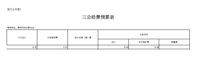 公務接待費3.27萬元,比上年0.88萬元增加2.39萬元,較上年增加260.23%;主要原因為2018年要籌備召開市第四次婦女代表大會,選舉省婦代會代表及開展各項婦女兒童工作需要發生支出。2018年婦聯無公務車購置費0萬元,與上年對比無增減。2018年公務用車運行維護費5萬元,比上年3.55萬元增加1.45萬元,同比增加40.85%,主要原因:市婦聯機關在從嚴執行中央八項規定,省委六條意見和市委實施細則的情況下,2018年要組織省婦代會代表選舉、考核、參會等活動,增加了各項推進婦女發展工作的活動,所以增加了費用。