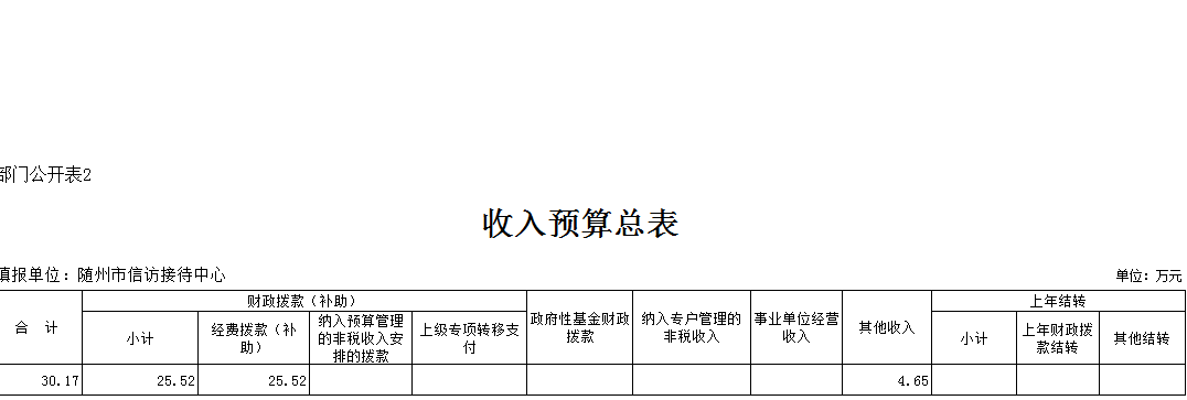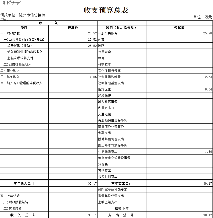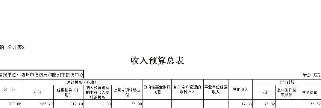 市信訪局2018年預算公開情況說明中含下屬二級單位市群眾信訪接待服務中心預算公開相關情況。自市群眾信訪接待服務中心設立以來,中心主任由局機關副處級領導兼任,辦公地點和局機關合署,兩名事業編制人員、以錢養事人員和局各機關各科室打通使用,市財政局只負責撥付事業編制人員經費,無其他辦公和項目費用(2018年預算安排1萬元辦公費用)。由于中心人員少、經費小、無單獨法人及不能辦理社會統一信用代碼種種特殊原因,中心人員經費自2012年至2016年均撥付于局機關財務戶頭合署使用。