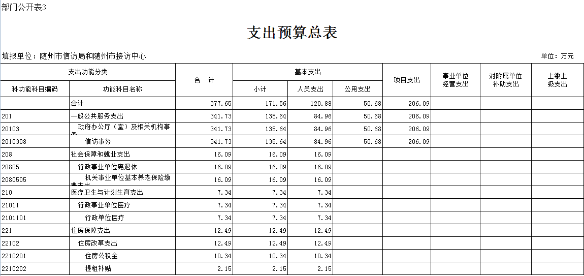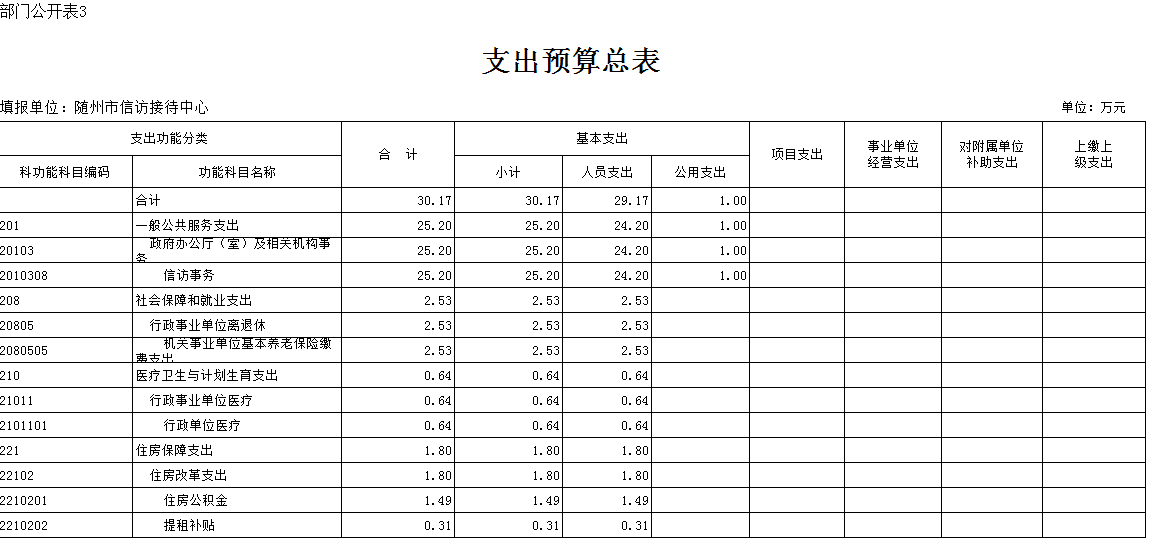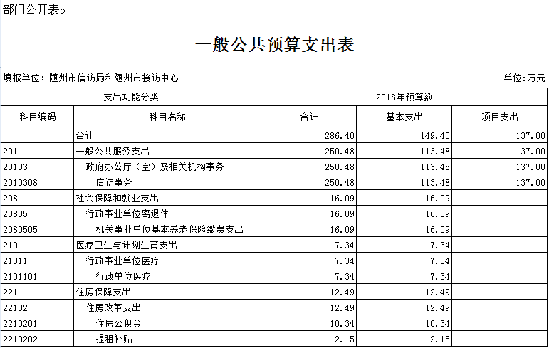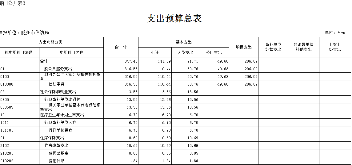 一般公共服務(類)住房改革支出(款)住房公積金(項):指市信訪局用于對機關個人和家庭的補助支出。