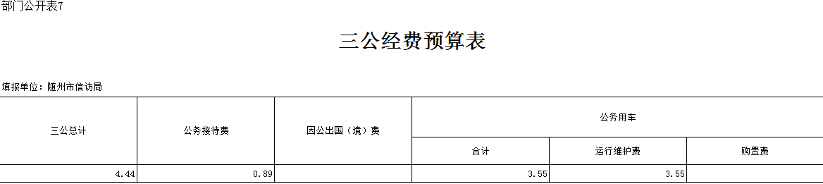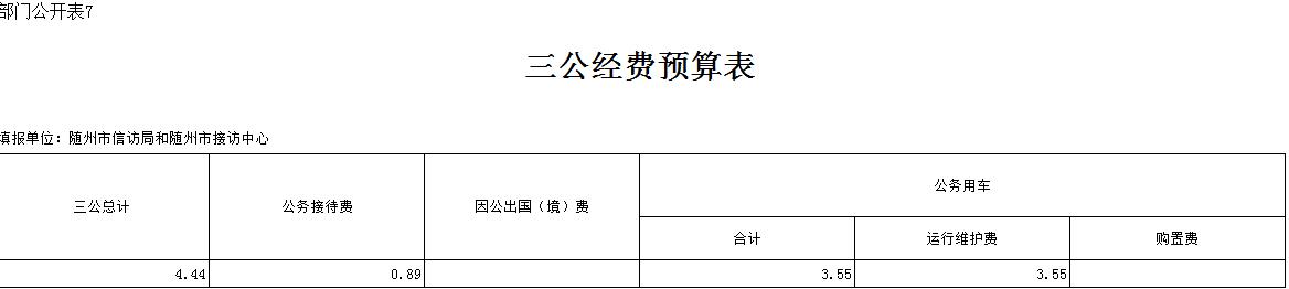 按照市財政部門2018年預算編報統一口徑,隨州市信訪局2018年三公經費財政撥款預算數為4.44萬元,其中,