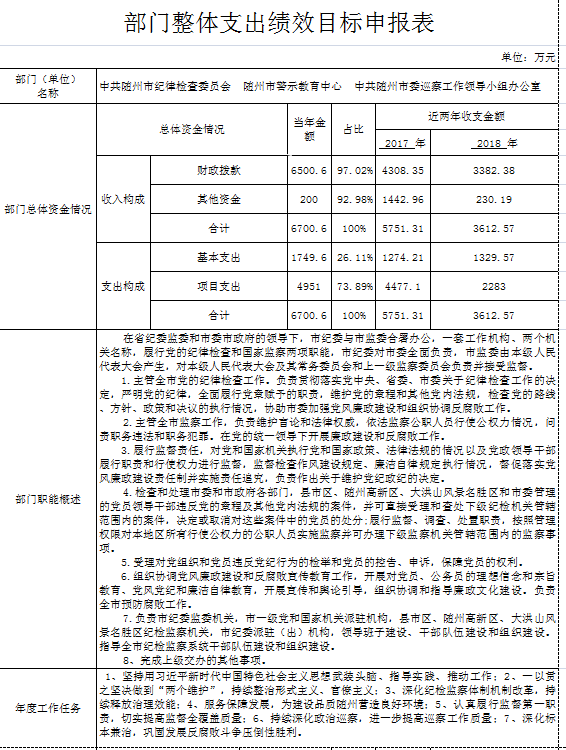 第二部分隨州市紀委監委2019年部門預算情況說明